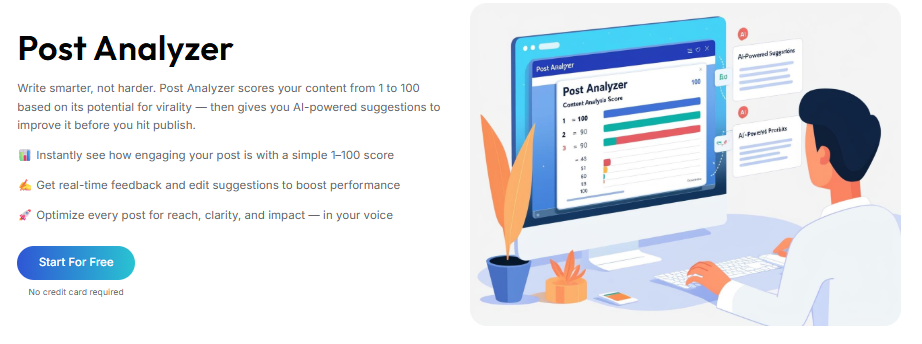 Before you hit publish, Post Analyzer scores your content based on its potential for virality and provides AI-powered suggestions for improvement.